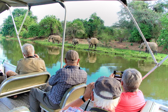 Safari am SambesiWir begeben uns auf eine ausgedehnte Pirschfahrt durch diese wildtierreiche und spektakuläre Landschaft. Unterwegs machen wir Halt für ein Picknick am Ufer des Sambesi, wo uns manchmal Elefanten begleiten. In den kleinen Seitenarmen des Flusses herrscht reges Treiben – Vögel, Antilopen und andere Tiere beleben das Wasser und die Ufer.